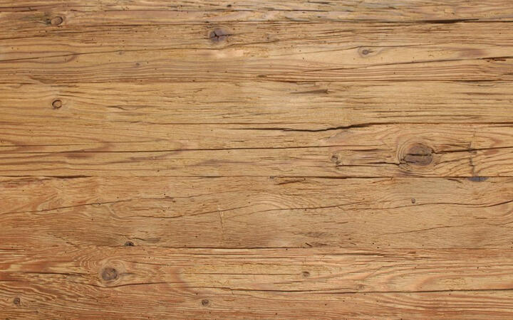 Holz: Die natürliche Maserung bleibt sichtbar, besonders bei Altholz mit durch das Vorhandensein von Ästen und Rissen.